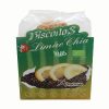Ingredientes: Farinha de ESPELTA* (integral e branca), xarope de arroz*, linhaça* dourada (15%), Óleo vegetal de girassol*, concentrado de maçã*, água, curcuma* (1%), sal marinho, pimenta*, essência de limão* e levadante: bicarbonato de sódio. *de produção biológica, Origem: EU/ não EU. Contém glúten. Poderá conter vestígios de soja, sésamo e frutos de casca rija. Ricos em fibra 10%. Os biscoitos Próvida são cuidadosamente elaborados com ingredientes provinientes de agricultura biológica. São leves e de sabor muito agradável. Não contém ingredientes de origem animal, corantes ou conservantes.