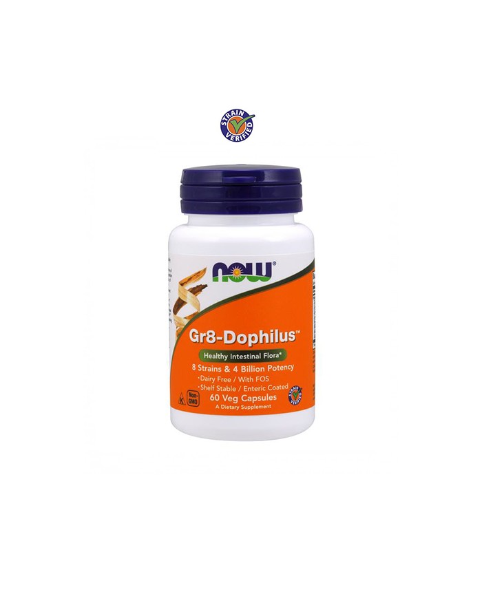 Ingredientes: Mistura de probióticos de 8 cepas – 4 Biliões de organismos : Lactobacillus acidophilus (1,2 biliões); Lactobacillus casei (600 milhões); Lactobacillus rhamnosus (600 milhões); Lactobacillus salivarius (600 milhões); Streptococcus thermophilus (400 milhões); Bifidobacterium bifidum (200 milhões); Bifidobacterium longum (200 milhões) e Bifidobacterium lactis (200 milhões).